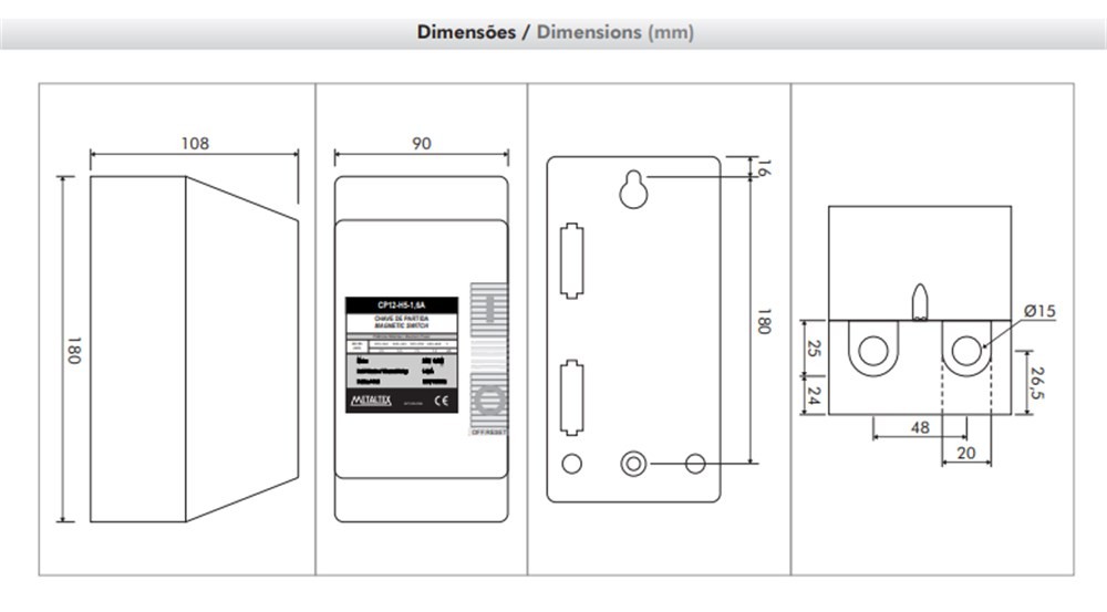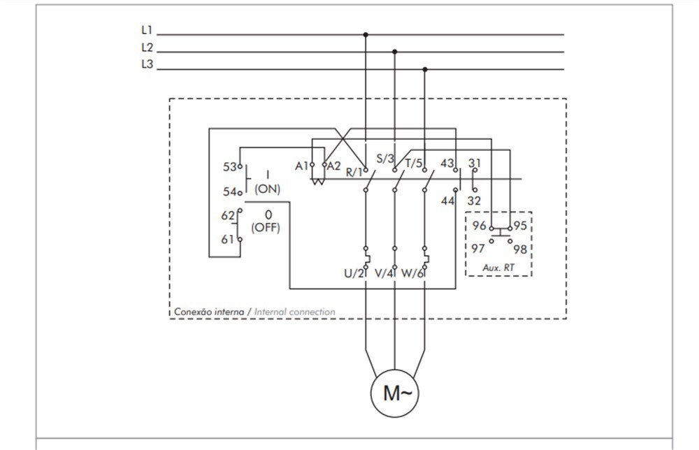 Chave de partida montada em caixa termoplastica com capacidade de partida de motores de 7,5 em 220VCA.