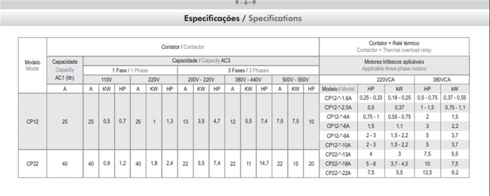 Chave Magnética de partida direta 220V Motor 7,5 CV