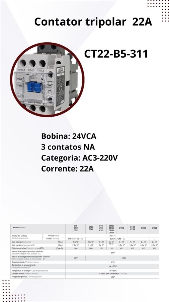 Aplicável em categoria AC3- 220V