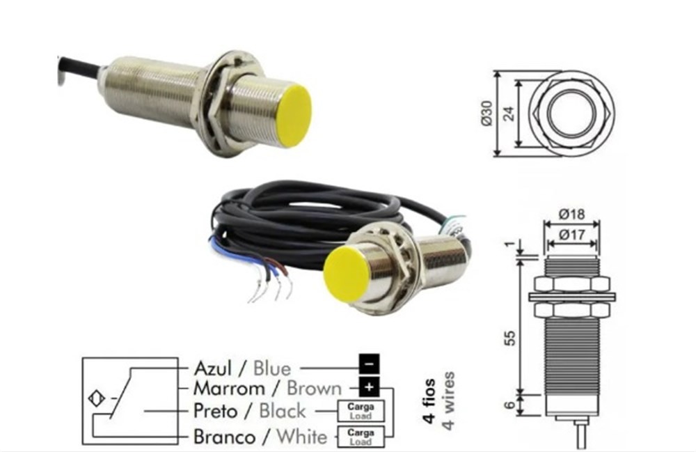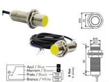 SENSOR INDUTIVO FACEADO M18 – SN: 5MM – NPN 4 FIOS – 1NA + 1NF (METALTEX)