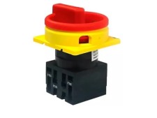 Chave seccionadora tripolar, com capacidade de corrente de 20A de acordo com categoria AC-21 e tensão nominal de 690VCA. Montagem em porta de painel. Manopla na cor amarela e vermelha para cadeado. De acordo com as normas IEC60947-3, EN60947-1, EN60947-5-1 e EN60204-1. Temperatura de operação -20 a 55°C.